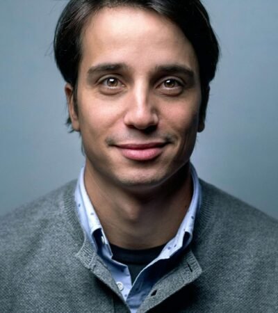 A person is carrying a bag of materials on a roof, with stacks of materials in the background. They are wearing a long-sleeve shirt and a cap. The scene includes tree branches partially framing the top left corner.